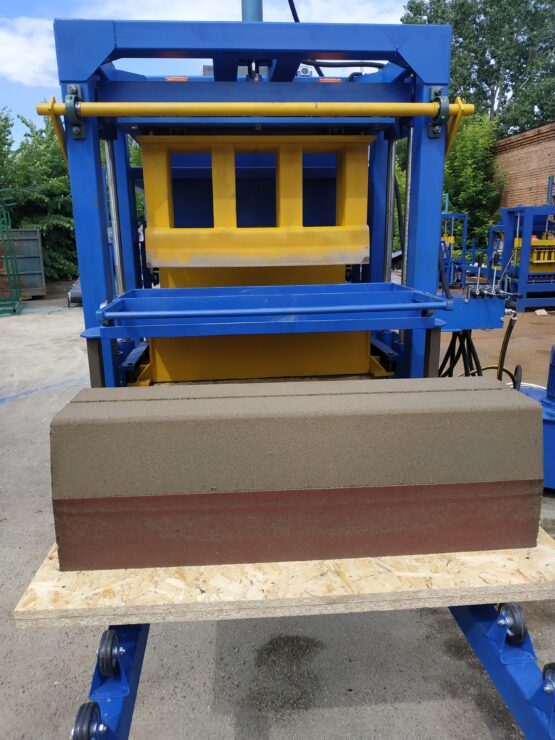 Производство дорожного бордюра длинной 1 метр с фактурным (верхним) слоем на вибропрессе КВП-858-2ПА